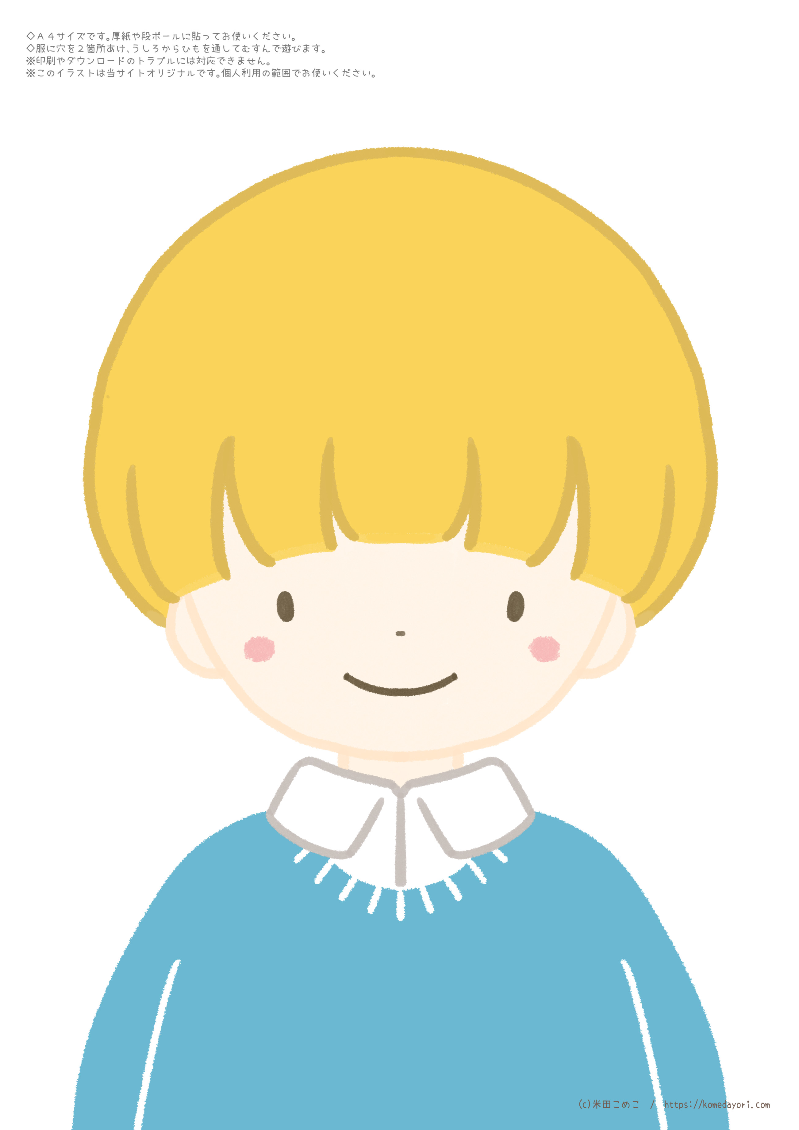 工作レシピ、ひも結び練習ボード男の子のA4サイズ印刷データサムネイル画像